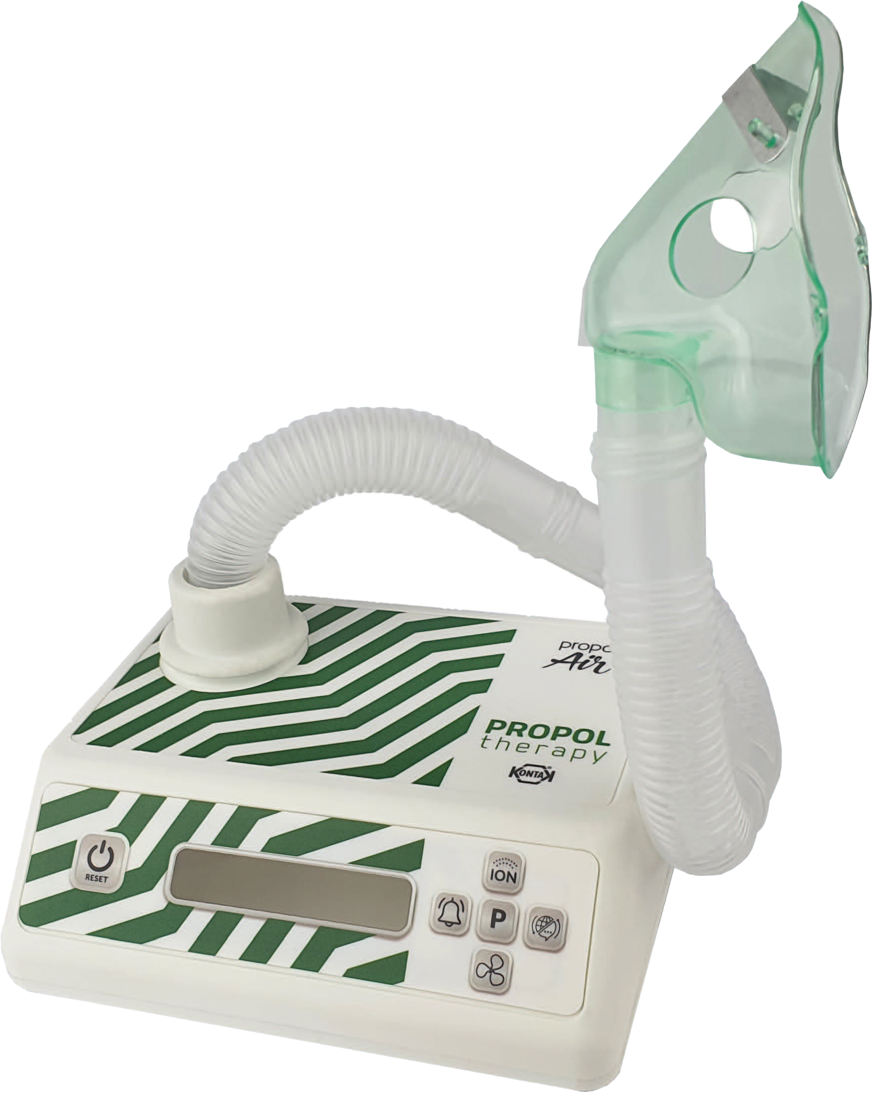 La versione con ionizzatore e ventola esalta le proprietà di disinfezione e di sanificazione della propoli. Attraverso il processo di ionizzazione, le molecole di propoli liberate nell'aria assumono carica elettrica negativa ed attraggono particelle volatili di polarità opposta, come batteri, virus e funghi, sui quali si esercitano le naturali proprietà antisettiche e antibiotiche della propoli. I microorganismi sono inibiti e non possono più svilupparsi. La carica negativa delle molecole della propoli esercita un'attrazione anche sulle particelle di fumo e polvere, che una volta catturate precipitano a terra: l'aria si libera così di sostanze nocive e inquinanti, e il nostro apparato respiratorio può godere a pieno dei principi benefici della propoli.