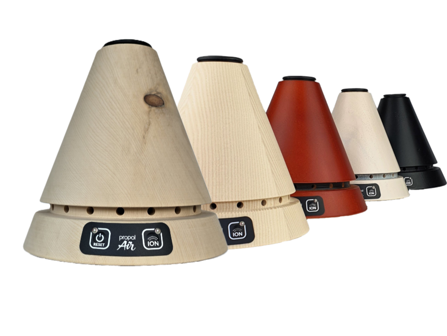Per gli amanti del legno, KONTAK propone la raffinatezza dei diffusori PROPOLAIR in legno a forma conica. Veri e propri complementi d’arredo, sono ideali per qualsiasi ambiente: uffici, sale d’attesa, negozi e locali pubblici. Sono disponibili in cinque tipologie: frassino naturale, pino cembro, e legno di ajus in tonalità ciliegio, wengé e rovere sbiancato. Ogni diffusore di propoli è realizzato artigianalmente, rendendolo unico e irripetibile.